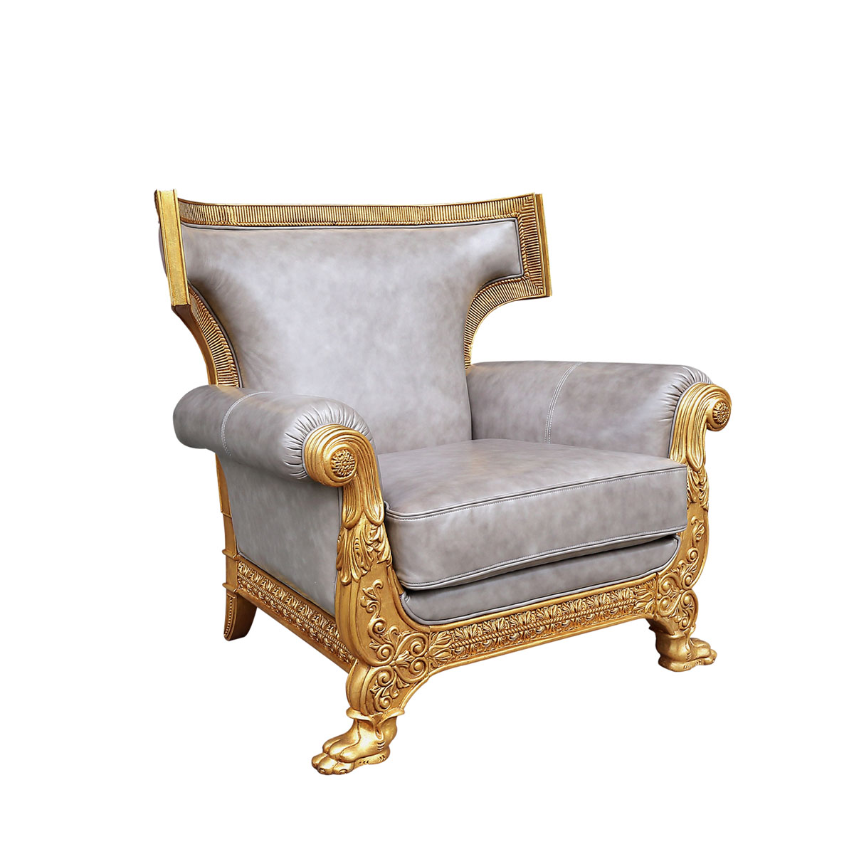 * Luxurious leather material, with carved wooden frame inspired by palace architecture, gold platinum craftsmanship, and richly padded cushions and backrests, shows the dignity and elegance of the British royal family, as well as its practicality and artistic sense.